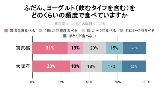 ・東京と大阪のユーザーでは、どちらも半数以上が1週間に1回以上ヨーグルトを食べていることが分かった。ここから健康維持や増進に良いビフィズス菌などの有用菌の摂取に対する意識は高いと言える。