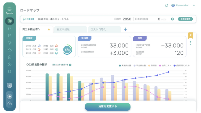 Cyanobaは、企業経営とカーボンニュートラル達成の両立を支援するサービスです。