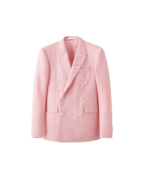 他にも綾織りのウールスーツやコットンリネンブレンドのスーツ、伝統的なデザインをスエードでアレンジしたレトロなシルエットのワーカージャケット、テクニカルな素材を使用したレインコートとウインドブレーカーなど素材で遊び心を加えたアイテムが多数登場。