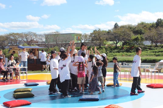 広さ1000平米のアートの上で多世代が交流する。三菱鉛筆株式会社が設立した表現革新振興財団とのコラボレーションにて実現