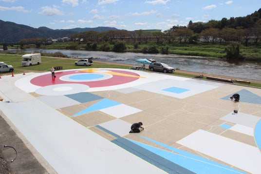 岡山県真庭市の旭川沿いの久世河川公園内にある、公共のスケートボード広場に床面ミューラル(壁画)が完成しました。1000平米の長円型スペースという日本最大規模の大きさとなります。企画運営は「Innovation from the WALL」をミッションにミューラルプロデュース事業を展開するWALL SHARE株式会社(本社:大阪市此花区、代表取締役:川添孝信)です。協賛は、三菱鉛筆株式会社(本社:東京都品川区、代表取締役:数原滋彦)が設立した、一般社団法人表現改革財団。
