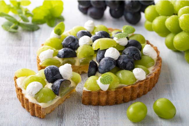 北アルプス産ブドウの贅沢タルト 販売予定価格906円(税・サービス料込)