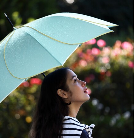 エレガントなものからベーシックなものまで多彩なデザインを揃え、その中でも新たに発売する日傘はフラワーモチーフをプリントではなく、「傘そのもので花を表現したい」という想いと「真夏の強い日差しの中でも快適に過ごしてもらいたい」という想いから生まれました。デザイン性のみならず、UVカット率99.9%以上、遮光率99.9%以上と機能性にもこだわりました。