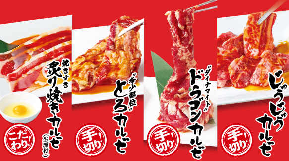 今回のリニューアルの目玉は、なんといっても「4大名物」です。人気のカルビにさらに磨きをかけました。