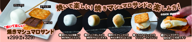 『焼きマシュマロサンド』は、お席にあるグリルを使用してご自身で焼くスタイルです。大人の方と一緒に、安全・安心に焼きマシュマロサンドをお楽しみいただけます。