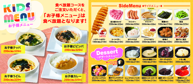 食べ放題コースをご注文いただくと、「お子様メニュー」も食べ放題となります。