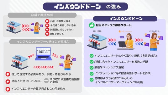 2025年5月、ケイビーカンパニー株式会社(本社:大阪府大阪市中央区本町、代表取締役:北島万乘)は、訪日外国人観光客の増加に伴い、店舗・観光施設様向けにインフルエンサーマーケティングを中心とした集客支援に特化したパッケージ「インバウンドドーン」の提供を開始いたしました。