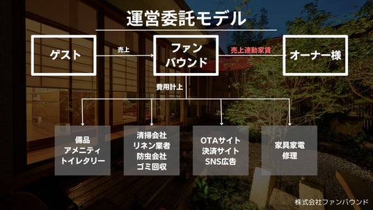 運営委託モデルの契約形態は売上連動型の家賃契約であるため、宿泊需要の高まりに伴った売上増加による利益増を享受することができつつ、コスト管理は運営会社が行うため、運営の手離れをしながら収益を確保できる点が投資家から好評を得ています。