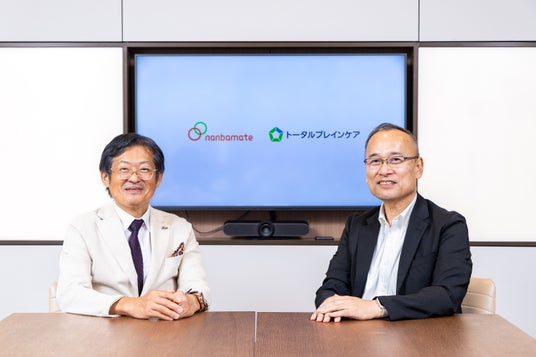 左から 株式会社ナンバメイト 代表取締役社長 時野学氏、トータルブレインケア 代表取締役社長 河越眞介