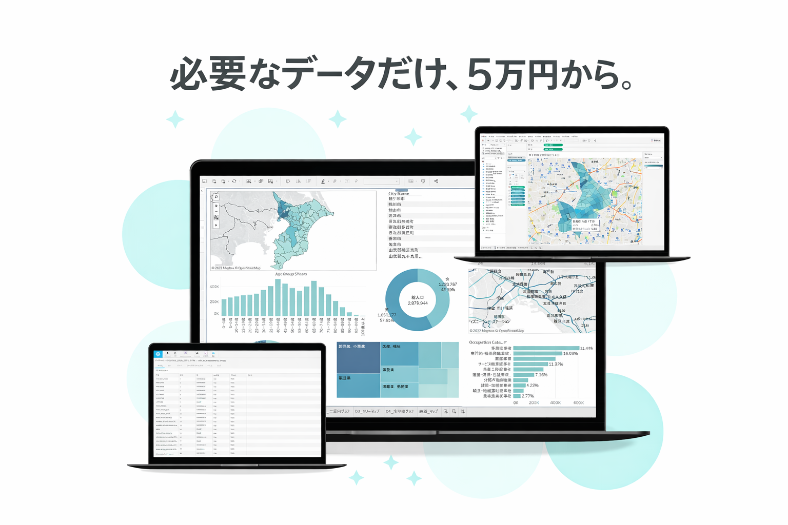 - データを“ばら買い”可能(5万円~)エリア一括・全量前提ではなく、必要なデータ、必要な指標だけを選択して購入できます。