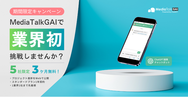 『ChatGPT連携チャットボットMediaTalkGAIで ”業界初” 挑戦しませんか?』キャンペーン概要