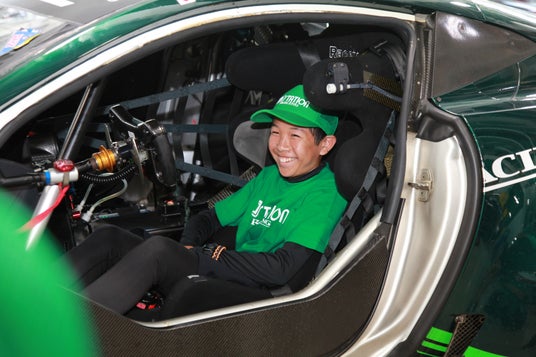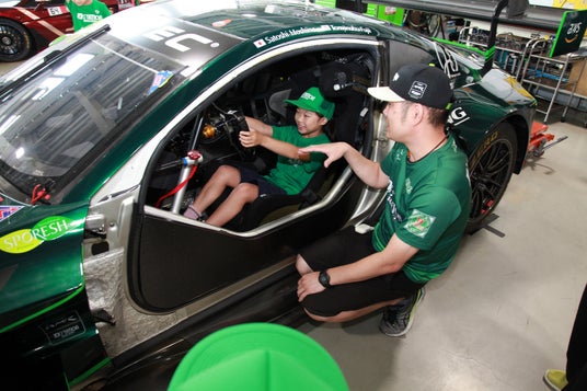 ファナテック・GTワールドチャレンジ・アジア・パワード・バイ・AWS に参戦中の #777 D’station Vantage GT3 EVO をエンジンが掛けられる状態でキープ。子どもたちに本物のレース車両の響くエンジンサウンドを披露しました。さらに数名のお子様には、エンジン始動体験にも挑戦していただきました。