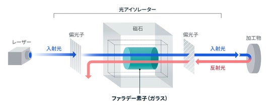 順方向の光を通し、逆方向の反射戻り光を遮断する光部品。レーザー光源の破損やノイズを防止する役割を担い、ファイバレーザーシステム、光増幅器、半導体検査装置など、幅広い産業・研究用途で用いられています。