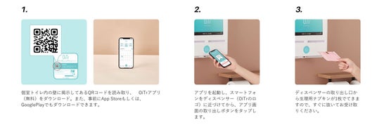 OiTrは、全国の商業施設や交通機関、公共施設、オフィス、学校などの女性個室トイレに生理用ナプキンを常備・無料提供する日本初のサービスです。専用アプリ(無料)をダウンロードし、ユーザー登録することで、2時間ごとに1枚、25日間で最大7枚の生理用ナプキンを無料で受け取ることができます。OiTrは、全国28都道府県の282施設に3,253台を設置(2025年2月時点)しています。