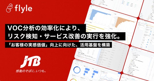 株式会社フライル(本社:東京都港区、代表取締役CEO 財部 優一、以下Flyle)は、株式会社JTB(本社:東京都品川区、代表取締役:山北 栄二郎)が、エスコート商品販売事業部におけるVOC(お客様の声)分析基盤として、AIインサイト分析プラットフォーム「Flyle」を導入したことをお知らせします。