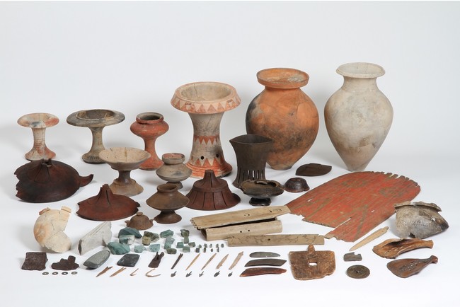 令和元年には、土器、石器、鉄器、木器、骨角器など様々な出土品1353点が国の重要文化財に指定されました。令和5年秋には重要文化財に指定された出土品などを展示公開する施設がオープンする予定です。