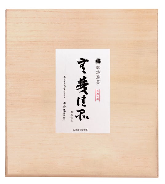 株式会社山本海苔店(本社:東京都中央区/代表取締役社長:山本貴大)は、「今年はこれに勝るものは存在しない」と見極めた一握りの原料を使用した商品「無双佳品」を2年ぶりに販売いたします。口どけ・味・香り・歯切れ・美しい色・艶など全てにおいて自信を持った一品です。