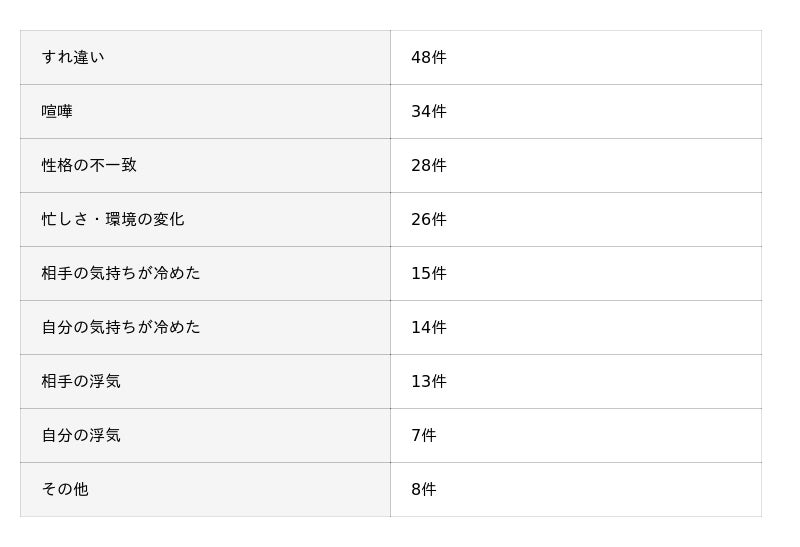 別れた原因の調査結果