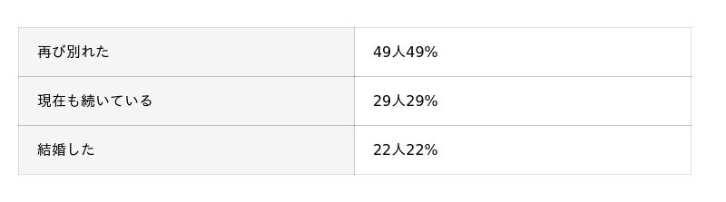 復縁後の関係(また別れた、結婚した等)