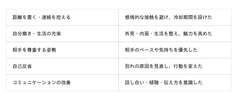 これらの行動を取った人ほど、復縁に至っています。