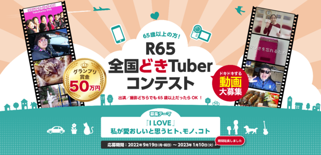 65歳以上対象の「R65全国どきTuberコンテスト」は、2023年1月10日(火)をもちまして、応募受付を終了いたしました。たくさんのご応募、ありがとうございました。