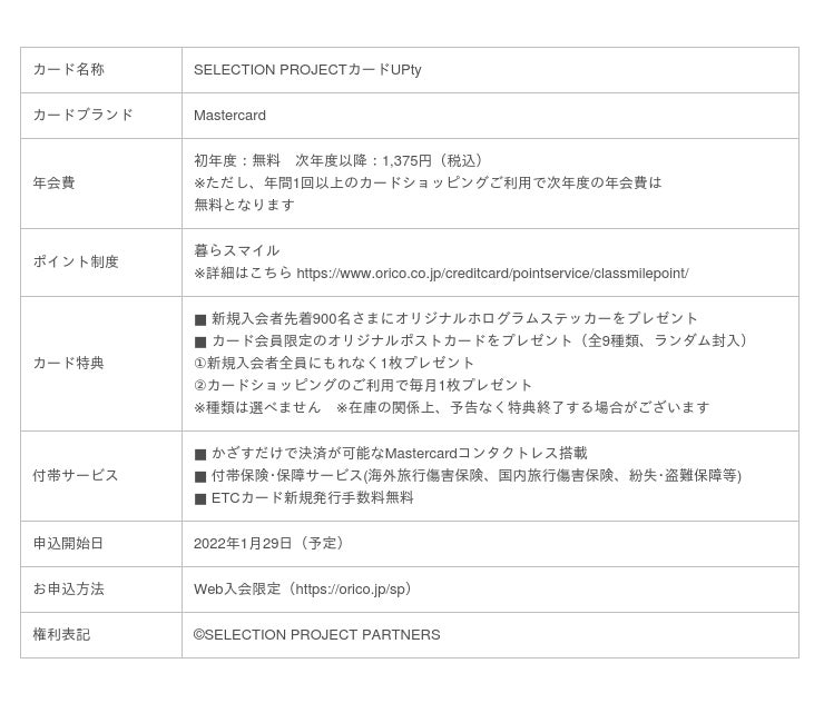 株式会社オリエントコーポレーション(東京都千代田区、代表取締役:飯盛 徹夫、以下「オリコ」)は、KADOKAWA×動画工房による「アイドル×オーディション×リアリティショー」をテーマとしたテレビアニメ「SELECTION PROJECT」のクレジットカード「SELECTION PROJECTカードUPty」の申込受付を、2022年1月29日(土)より開始いたします。