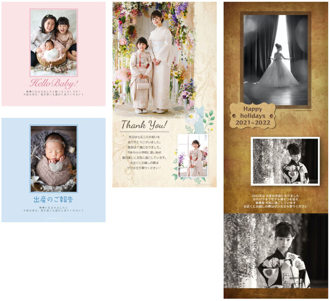 全国に26店舗の写真館を運営する株式会社らかんスタジオ(所在地:東京都武蔵野市吉祥寺本町1-4-11、代表取締役 鈴木観)は、11月1日(火)から「らかんオンライン」で2023年の年賀状の注文受付を開始します。定番からおしゃれなものまでオリジナルデザインが豊富で、注文方法も簡単。プロによる印刷クオリティで、こだわり派の方にも満足いただける1枚をお届けします。(https://laquan.com/nenga.html)忙しい方やもっと気軽にカードを送りたい方には、無料で作れてスマホで送れるdGreetingもご用意。結婚、出産、七五三、成人式など、家族の思い出の写真を入れて新年の挨拶ができます。(https://dg.laquan.com/login)