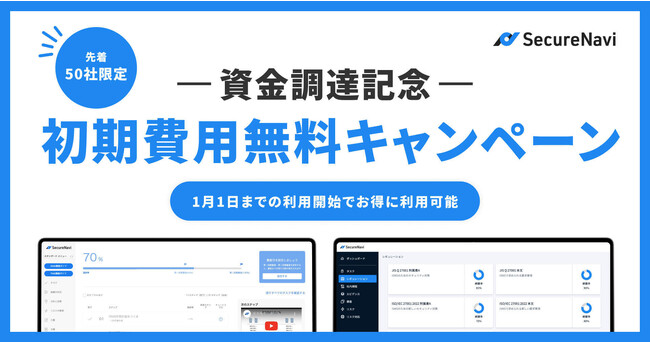今回の資金調達を記念し、先着50社限定で「SecureNavi」あるいは「SecureNavi Pro」を特別価格で利用できるキャンペーンを実施いたします。ISMS認証やPマークの取得・運用を始め、複数の情報セキュリティ規制やガイドラインへの準拠、社内の情報セキュリティ規程の整備・運用、監査や審査への対応にお困りの企業様は、ぜひこの機会に当社サービスをご利用ください。