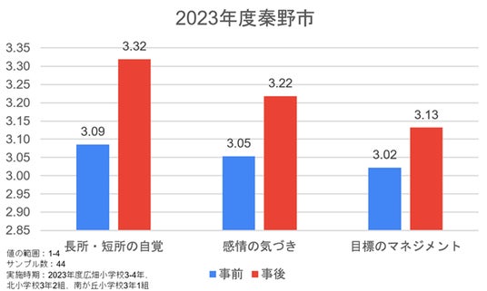 - 2023年度:「長所・短所の自覚」「感情の気づき」「目標のマネジメント」の向上