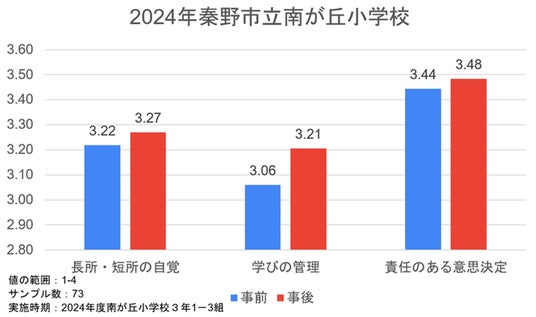 - 2024年度(南が丘小学校):「長所・短所の自覚」「学びの管理」「責任ある意思決定」の向上