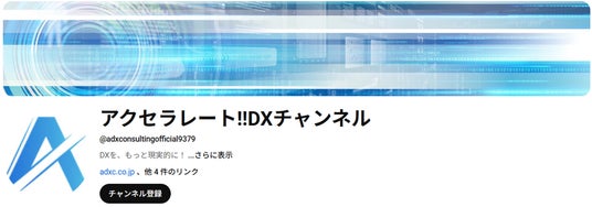 ERP・CRM・EPM領域に特化したコンサルティングサービスを提供する株式会社ADX Consulting(本社:東京都千代田区、代表取締役:関 滋弘、以下「ADX Consulting」)は、公式YouTubeチャンネル「アクセラレート!!DXチャンネル」を開設したことを お知らせします。