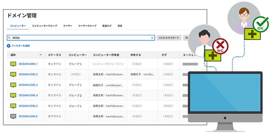常駐接続の端末を一覧で確認できるようになりました。(※ドメイン管理機能は必要な権限をお持ちのユーザーの方のみご利用いただけます)