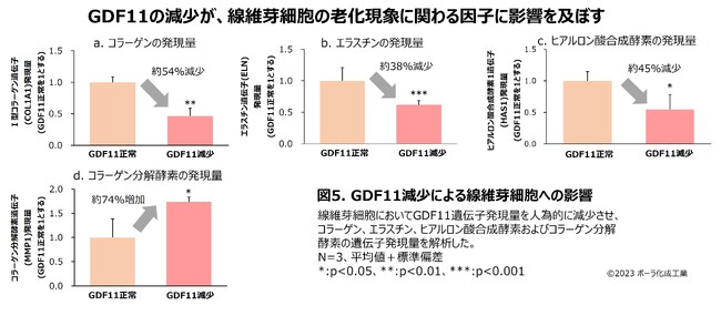 【補足資料4】 線維芽細胞におけるGDF11減少の影響(ハリ低下、シワ・たるみ促進につながる変化)