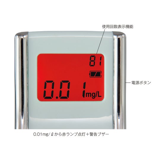 - 呼気アルコール濃度を0.01mg/Lから検出。