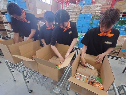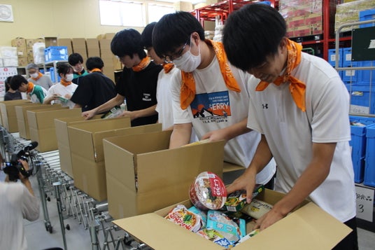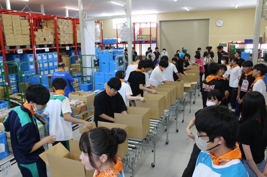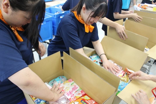 ボランティアを初めて体験する高校生も多く、箱を受け取る子どもたちの顔を想像しながら、一つひとつ丁寧に食品を詰める様子が印象的でした。