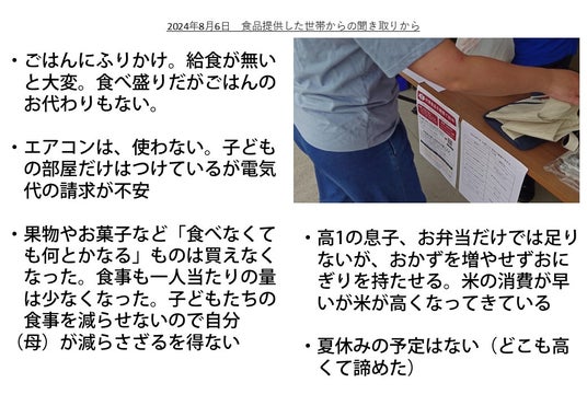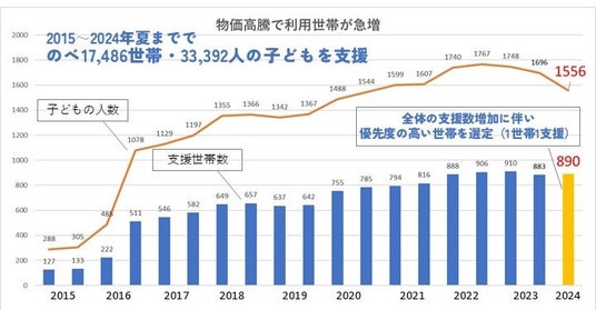 子どものいる世帯への支援数は増え続け、暮らしは厳しさを増しています。