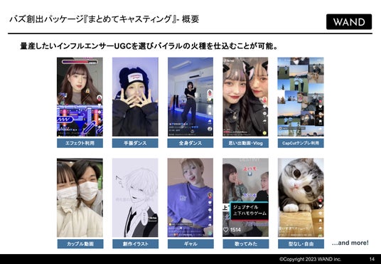 ・まとめてキャスティング: マイクロインフルエンサーUGCを多数創出することで、ショート動画フォーマットを起点としたバイラルを支援