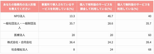 法人格別にデータを比較すると、社会福祉法人が最も顕著に個人での無断のAI利用が見られることがわかりました。