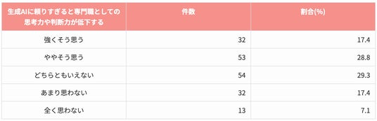 46.2%が生成AIに頼りすぎると専門職としての思考力や判断力が低下すると実感