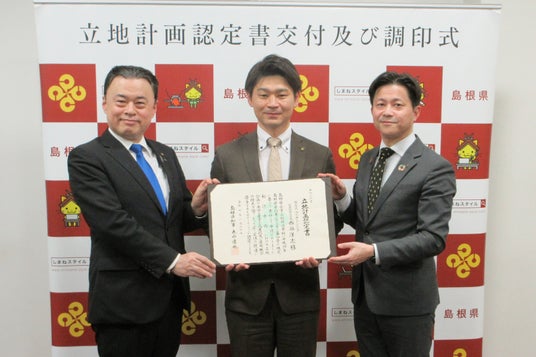 医薬品・医療機器製造業を中心に幅広い業界へ自社開発ソフトウェア「デザイナーシリーズ」を展開する株式会社ユニオンシンク(本社:大阪市中央区、代表:西谷 洋志、以下当社)は、島根県松江市での事業所新設に向け、1月20日(月)、島根県より立地計画認定書の交付を受け、島根県及び松江市の三者で事業所等の立地に関する覚書に調印しました。