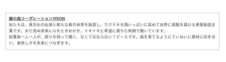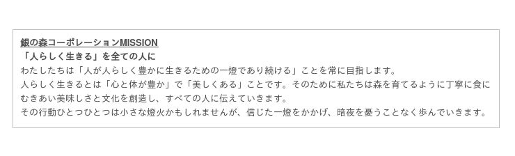 「銀の森コーポレーションの歴史は「挑戦と改革、そして変革」の50年でした。また、会長がよく口にされる言葉があります。「おいしいもので、人の幸せをつくりなさい」その実現に邁進した50年でもありました。私は従業員250名を率いるリーダーとして、先人たちに敬意を払い、次の50年を導くリーダーになることを宣言します。」