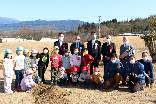 そして第二部では恵那市・中津川市の各市長をお招きし、地元の園児15人と一緒にどんぐりの樹の植樹式を執り行いました。