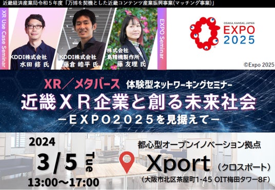 株式会社エスユーエス(本社:京都市下京区、代表取締役社長:齋藤 公男)は、2024年3月5日(火)にXport(住所:大阪市北区)で開催されるXR/メタバース関連技術のワークショップ型セッション「近畿XR企業と創る未来社会~EXPO2025を見据えて~」にてブース出展いたします。
