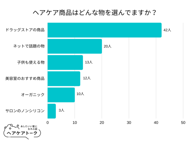 「ヘアケア商品はどんな物を選んでますか?」とアンケート調査した結果、1位は『ドラッグストアの商品』でした。