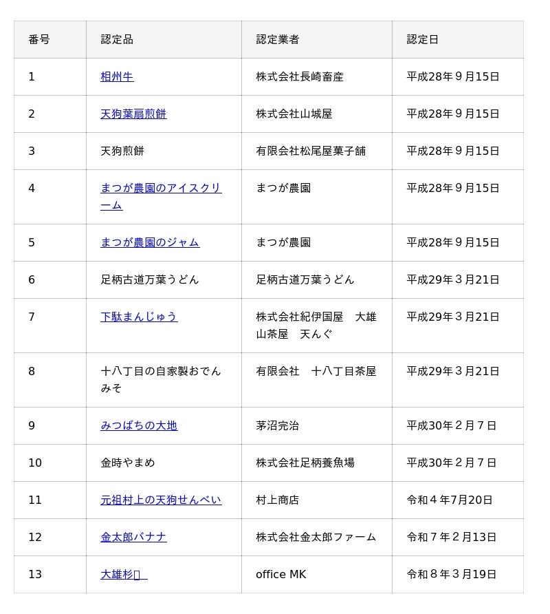 南足柄市の優れた産品として、南足柄ブランドに認定された13品をご紹介