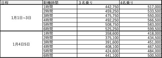 金額:税込129,250円~/人(3名乗り:¥442,750~/機体、4名乗り¥517,000~/機体)