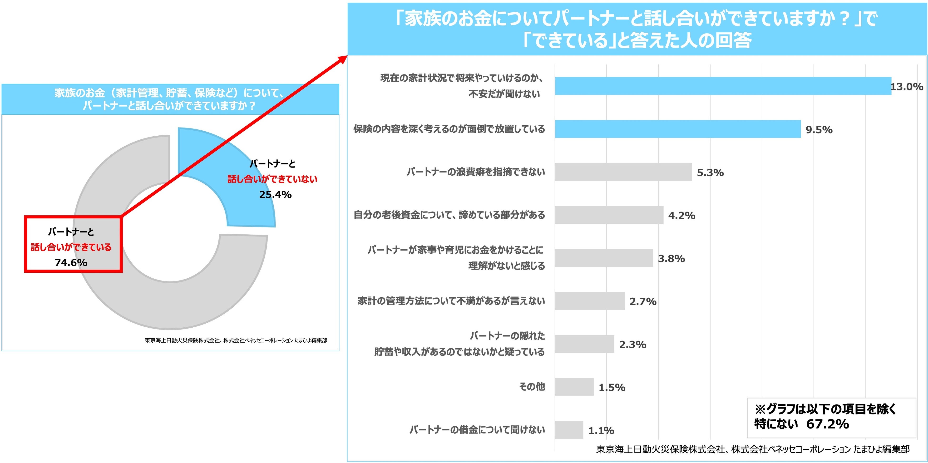 調査の結果、パートナーと家族のお金(家計管理、貯蓄、保険など)について「話し合いができていない」と回答した人が25.4%で、約4人に1人がお金のコミュニケーション不足であることが明らかになりました。