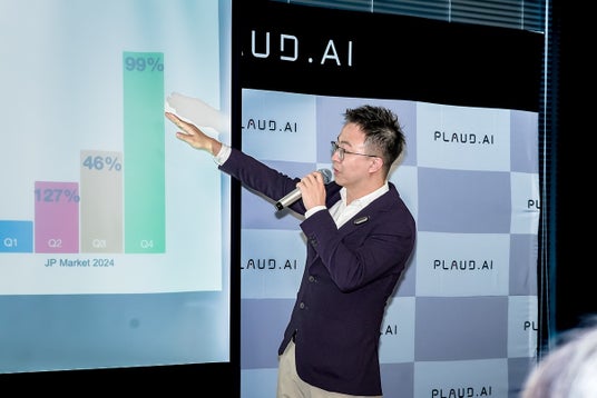 PLAUDが展開するAIボイスレコーダー「PLAUD NOTE」や「PLAUD NotePin」は、2024年12月時点で日本国内ユーザーが約8万人、実店舗取扱数は280店舗を突破し、売上成長率は21倍(2024年1月比)という著しい成果を記録しました。日本市場は2024年度のPLAUDグループ全体の世界販売台数ランキングでも第2位となり、PLAUDのグローバル成長をけん引する存在となっています。