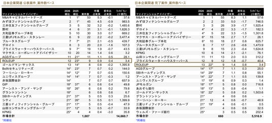 「日本M&Aレビュー2026年(1‐3月期)」において、昨年度ランキングから大きく飛躍、公表案件・完了案件ともに順位が大幅ランクアップ。