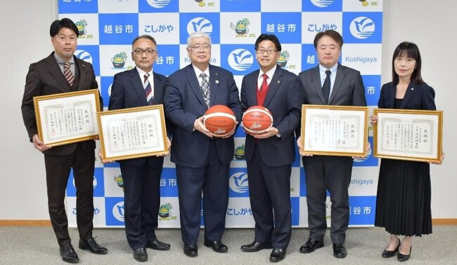 越谷アルファーズが実施している「越谷市内小中学校へバスケットボール寄贈プロジェクト」に賛同したパートナー企業から、市内小中学校全校にバスケットボールが寄贈されました。